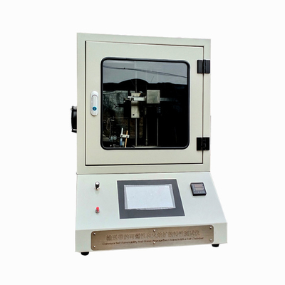 Chambre d'essai pour les caractéristiques d'inflammabilité et de propagation de la flamme des bandes transporteuses, adaptée à l'essai du risque de combustion du propane et de l'inflammabilité des bandes transporteuses,ceintures de levage et autres matériaux dans les instituts de recherche et les usines, position électrique mobile de la lampe au propane, allumage électronique, temps d'accumulation, conformément à la norme AS1334.10-1994 "Méthodes d'essai pour les bandes transporteuses et les bandes de levage", méthode 10:Exigences relatives à la détermination des caractéristiques d'inflammabilité et de propagation de la flamme des bandes transporteuses.